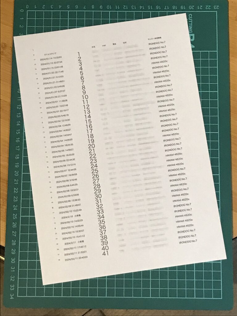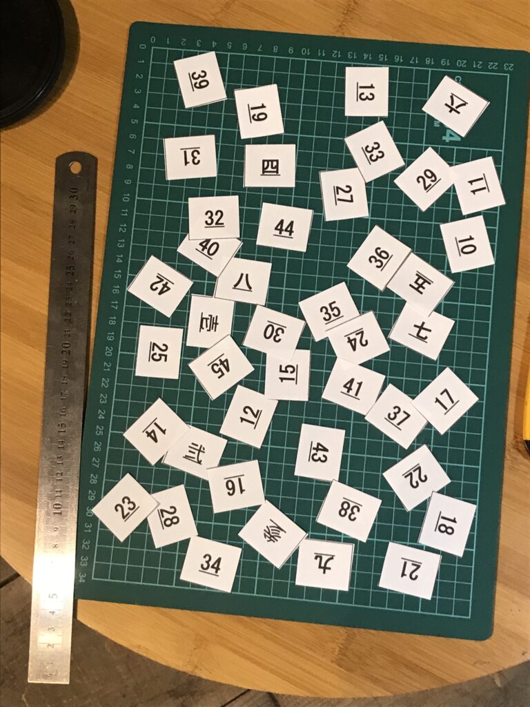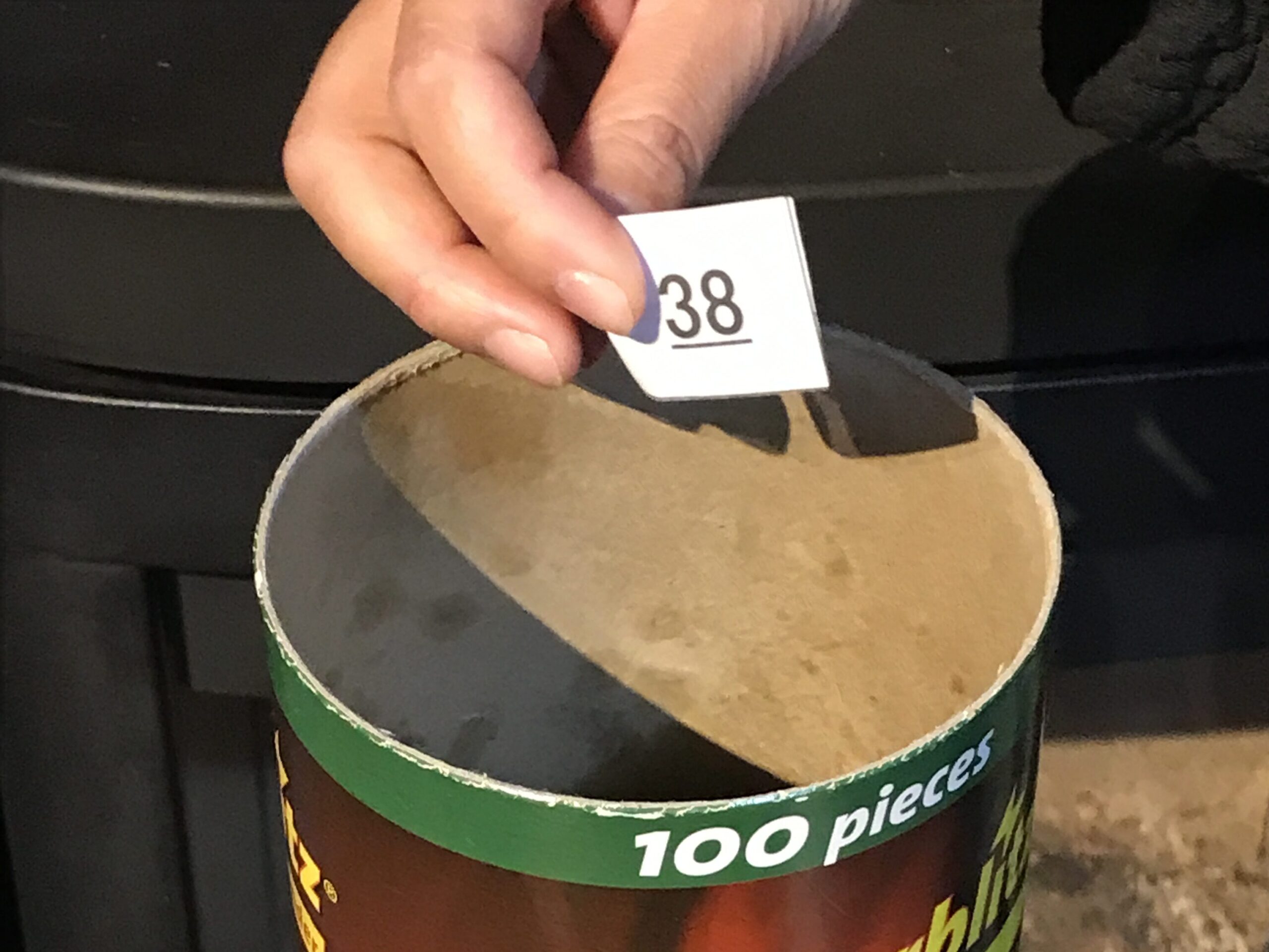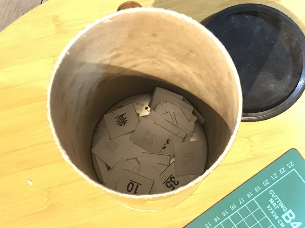 条件を満たす41名の応募者様につきまして、ご応募順に1〜41の番号をふった応募者リストを作り、それに対応する1〜41のカードを作りました。(写真では45までありますが、42〜45は取り除いています) 着火剤の空き筒に封入し、念入りにシャッフルし、無作為に1枚とりだしました。