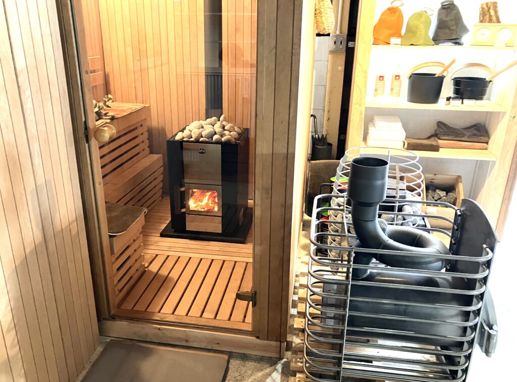 そんな薪サウナの文化を日本にも、関西にもという思いから、薪サウナストーブと小さなサウナキャビンの実演展示・体験室(定員は2名程度)をつくりました。プライベートサウナですので、流儀に拘らず自由にサウナを楽しんでいただくことができます。