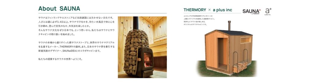 サウナの本場から選りすぐった薪サウナストーブと、世界のサウナマテリアルを生産するメーカー、THERMORY(テルモリー)の内外装材のここちよさを感じてください。